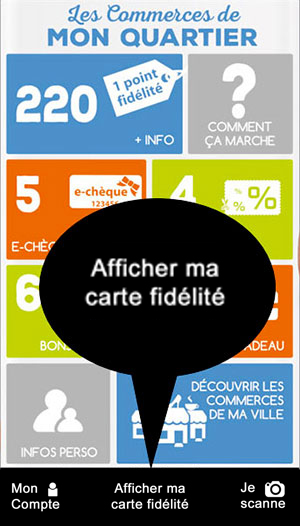 Faites-vous plaisir, cumulez des économies !Toute l'année, chez vos commerçants participants, vos achats sont récompensés. Cumulez des points fidélité pour recevoir des Chèques fidélité, des Offres privées, profitez des bons plans et tous les 10 achats réalisés recevez des offres découvertes. A chaque nouvel événement sur votre compte fidélité, vous recevrez une alerte sur votre téléphone ou par email. A vos Smartphones, tablettes ou ordinateurs !Je collecte mes points fidélitéA chaque achat, demandez vos points fidélité. Ouvrez l'application sur votre smartphone et cliquez sur l'icône