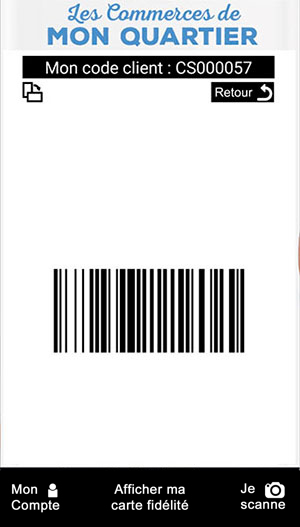![]() Le commerçant scanne le code-barre depuis son smartphone. Après validation par le système, le commerçant vous accorde la remise sur votre nouvel achat en fonction de la valeur en € indiquée sur votre chèque fidélité. Vous ne pouvez utiliser qu'un seul chèque fidélité maximum par achat.Je reçois des Offres découvertesTous les 10 achats vous recevez automatiquement une Offre découverte. Une notification push vous informe que vous venez de recevoir une Offre découverte : cliquez sur la notification pour ouvrir l'offre ou sur « Offres Découvertes » dans votre application. Affichez l'offre sur votre Smartphone et présentez votre Smartphone à votre commerçant pour bénéficier de l'offre selon les conditions précisées. Je reçois des Offres privéesSelon l'historique de vos achats ou l'actualité de vos commerçants, vous êtes susceptible de recevoir des offres privées. Une notification push vous informe que vous venez de recevoir une offre privée : cliquez sur la notification pour ouvrir l'offre (ou cliquez sur "Offres privées"). Affichez l'offre sur votre Smartphone et présentez la à votre commerçant pour bénéficier de celle-ci selon les conditions précisées. Je reçois des Bons plansPour en profiter, ouvrez l'application et cliquez sur Bons plans. Sélectionnez le Bon plan de votre choix pour en profiter en magasin et présentez votre Smartphone à votre commerçant.